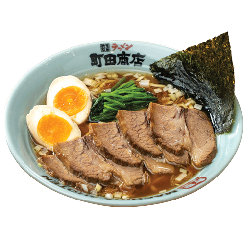 The pork bone and soy sauce-based soup is made by mixing broth made from pork bones and chicken bones with soy sauce sauce sauce, and the noodles are medium-thick straight noodles with a unique crunchy texture. Spinach, chashu pork, and seaweed are the basic toppings.